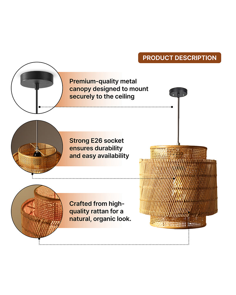 Handcrafted pendant lampshade made from Cane, designed to bring natural warmth and modern elegance to your interiors.