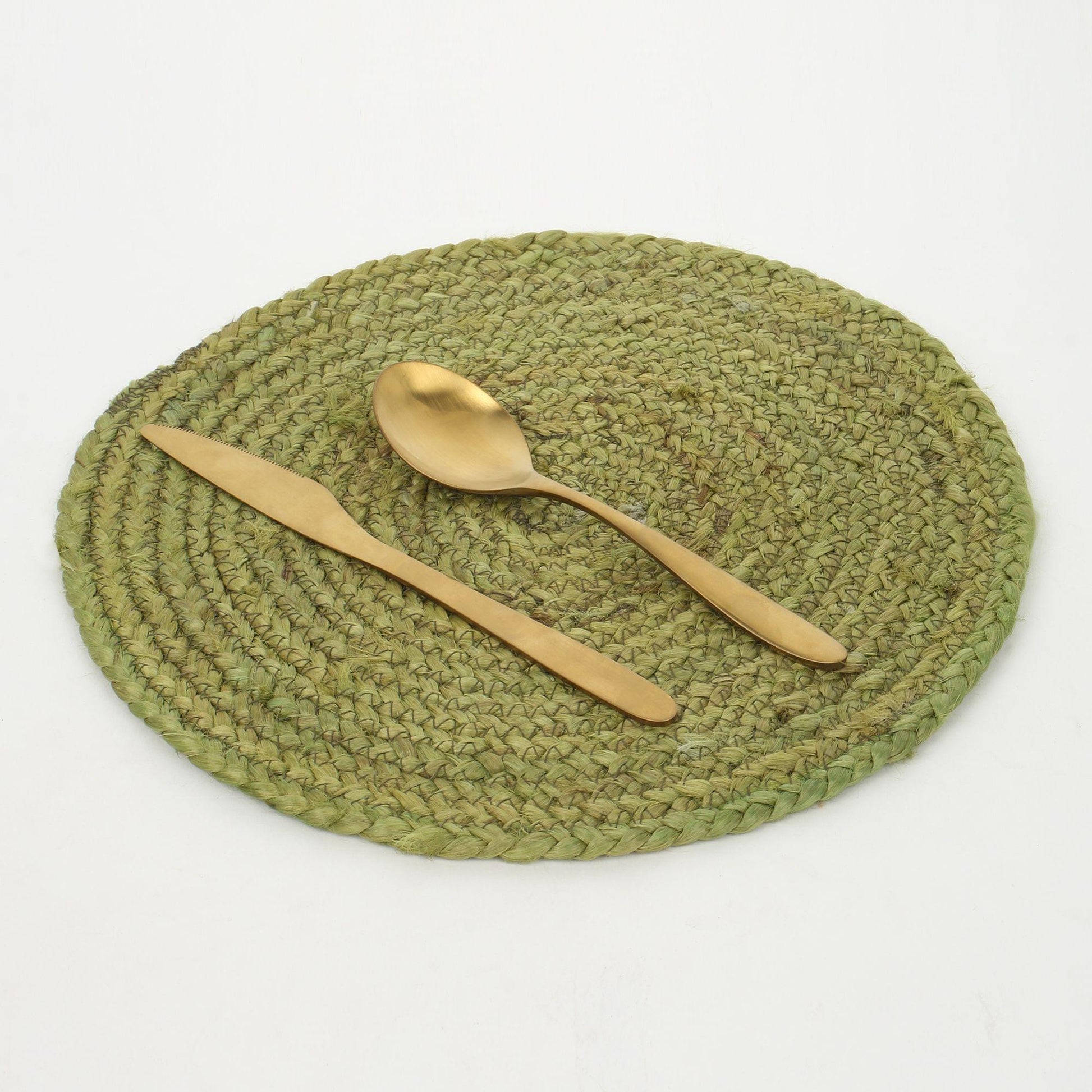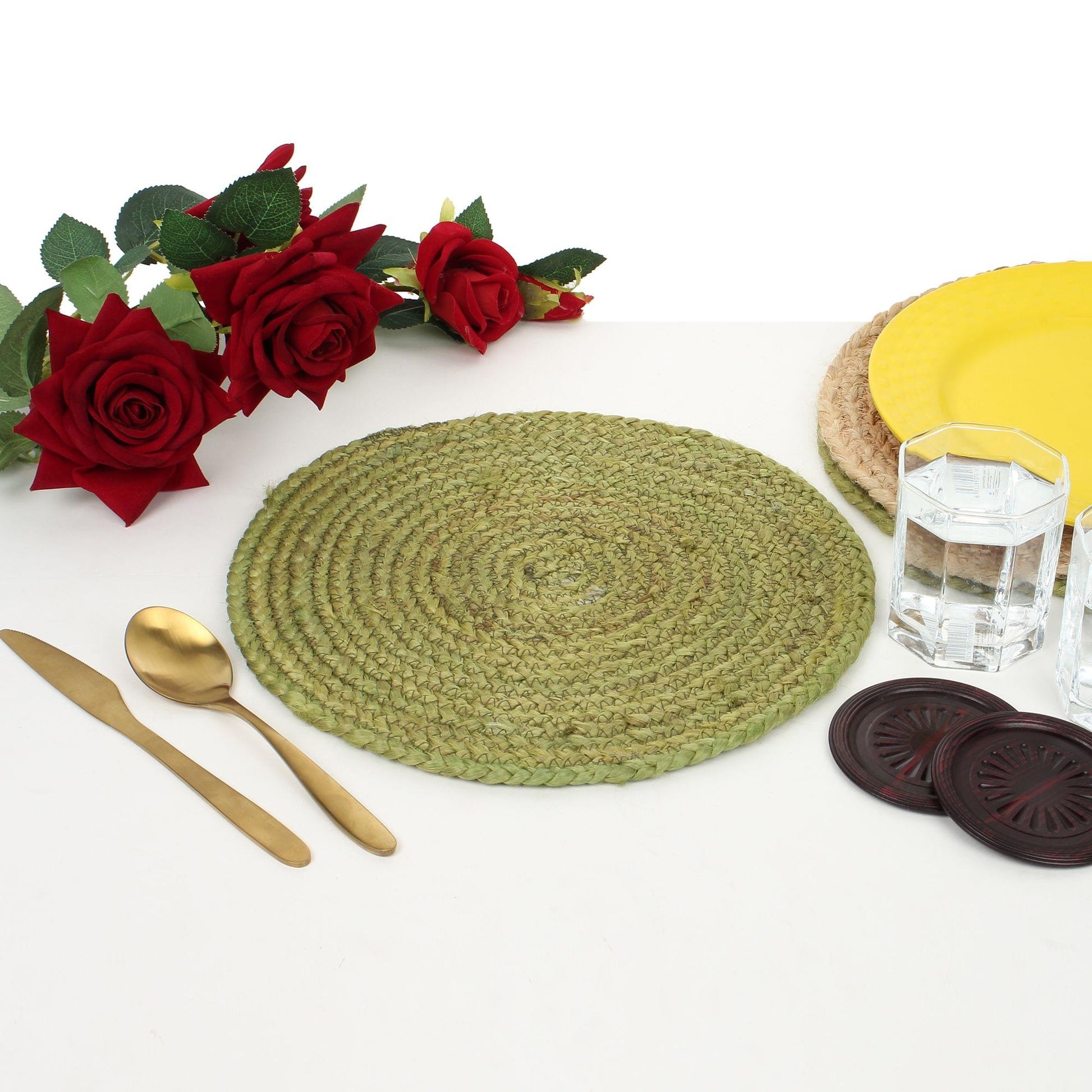 Die handgefertigte runde Jute-Esstischmatte hat die perfekte Größe, um überall zu passen. Es kann als Esstischunterlage verwendet werden, um Flecken oder Essenskrümel zu entfernen. Verwenden Sie diese vielseitigen runden Tischsets auf dem Beistelltisch Ihres Bettes, um dem Schlafzimmer einen grünen Farbton zu verleihen. Stellen Sie es auf den Mitteltisch des Wohnzimmers, um dem Raum einen Hauch von Raffinesse und Wärme zu verleihen. Es wird sicherlich das Dekor des Wohnraums erneuern und die Gäste von der natürlichen Schönheit und den Texturen der handgefertigten Jute-Esstisch-Tischsets in Ehrfurcht versetzen.