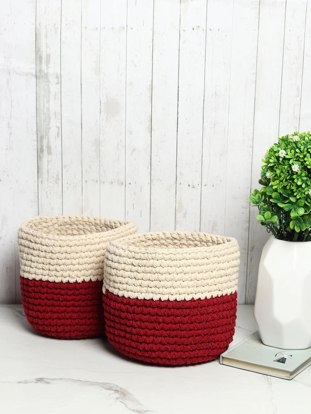 Handwerkliche Allzweck-Häkelkörbe, die sich perfekt für Ihr Zuhause und als Pflanztöpfe für den Schreibtisch eignen.