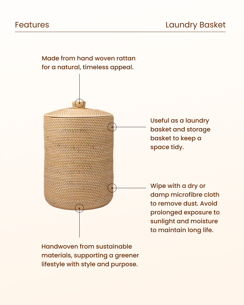 Handcrafted multipurpose rattan basket, designed to organize your space with natural elegance and timeless charm.