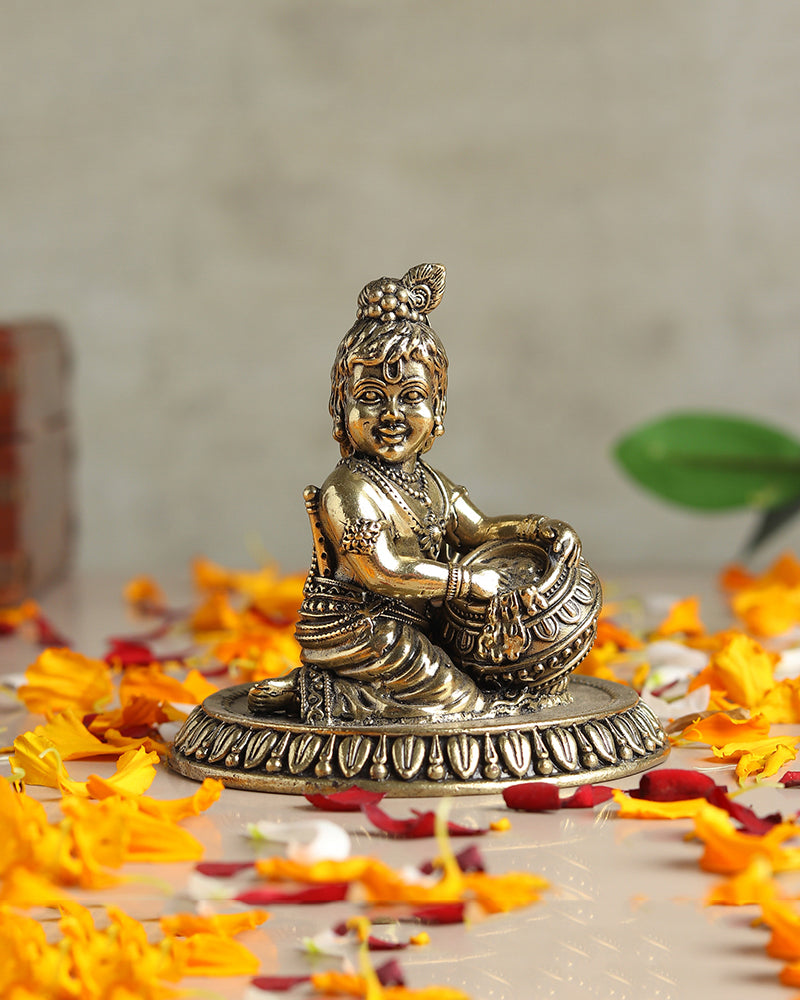 Pure Brass Bal Krishna Idol for Home Temple and Pooja Room