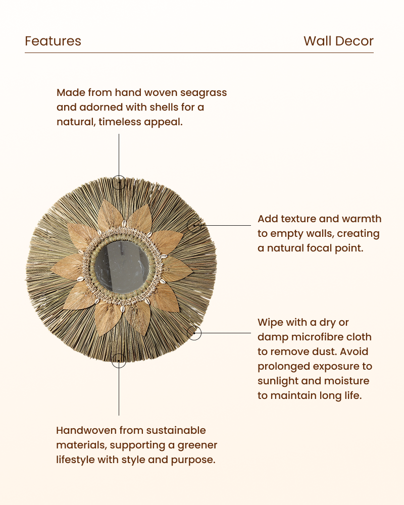 Handcrafted Raffia wall decor designed to add warmth, texture, and organic artistry to any space.