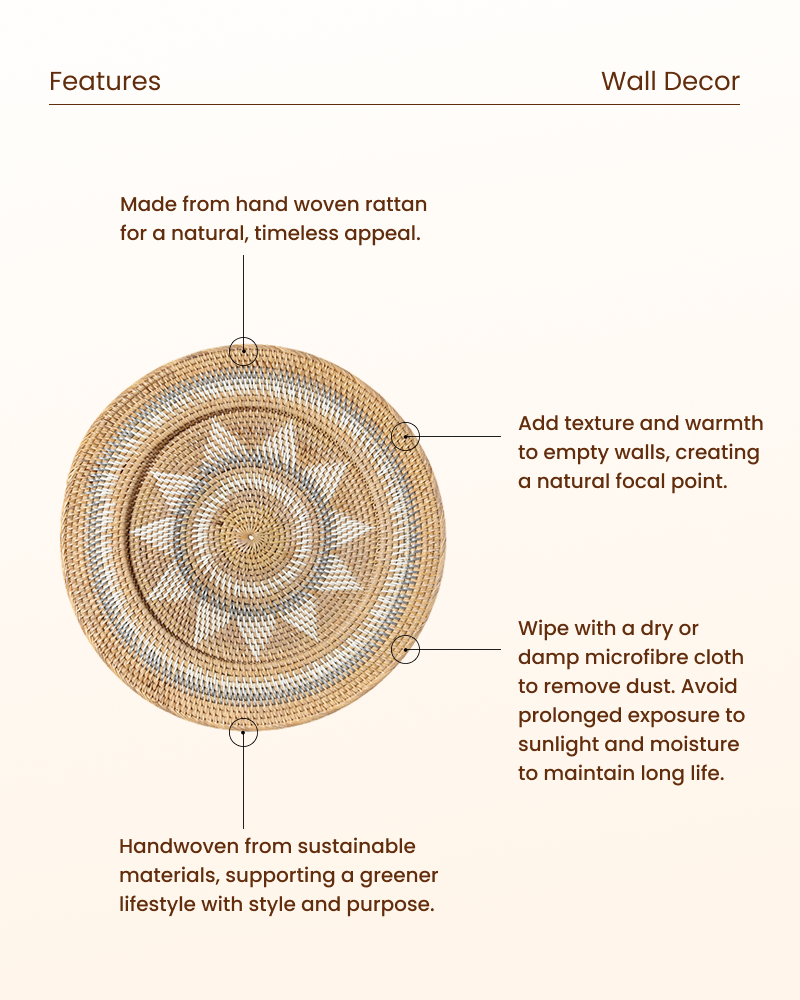 Handcrafted rattan wall decor designed to add warmth, texture, and organic artistry to any space.