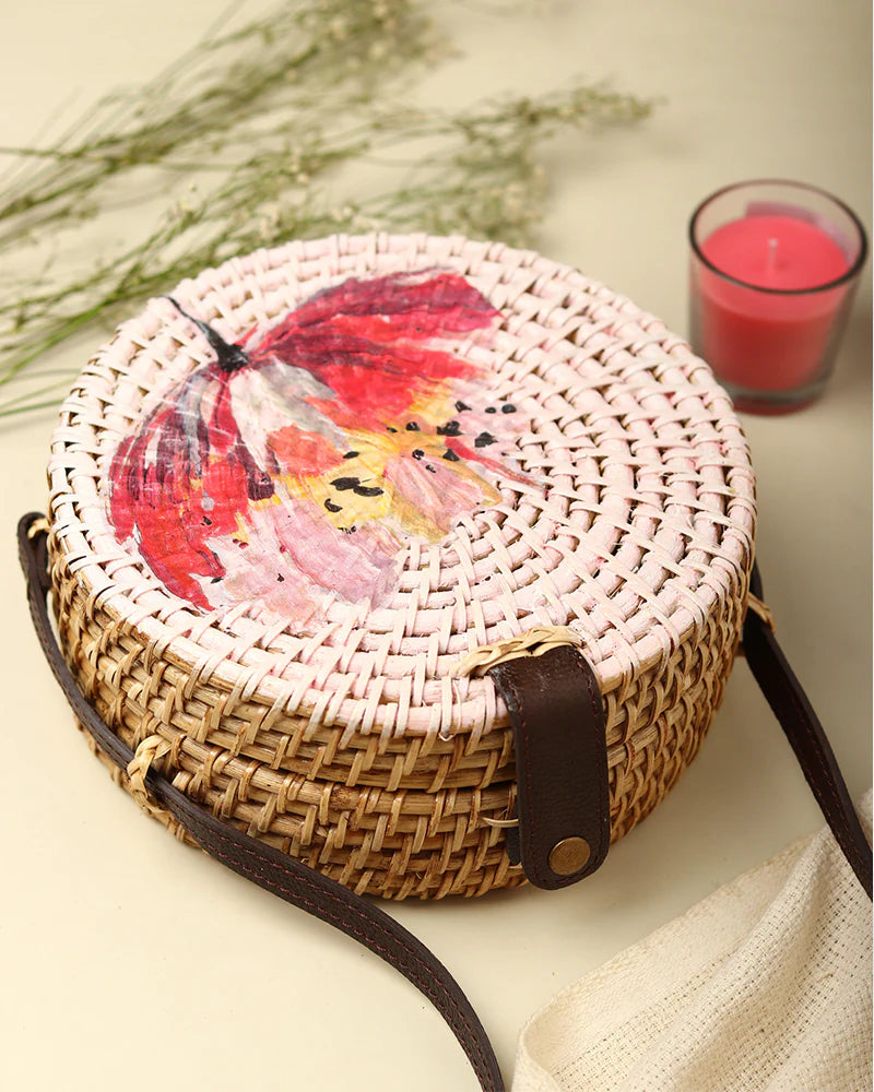 • Sac à bandoulière rond Boho en rotin | Sac de plage | Sac Bali | Sac à bandoulière pour un usage quotidien.