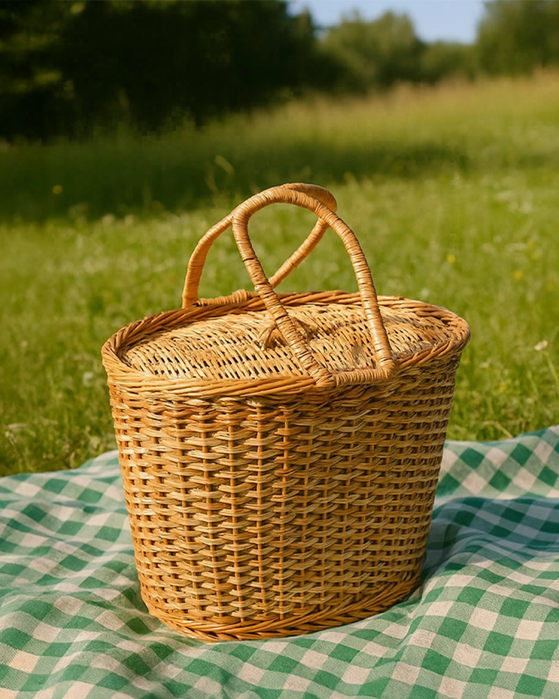 Handwoven oval wicker picnic baskets bring a distinct organic vibe to your home and picnic outings.
