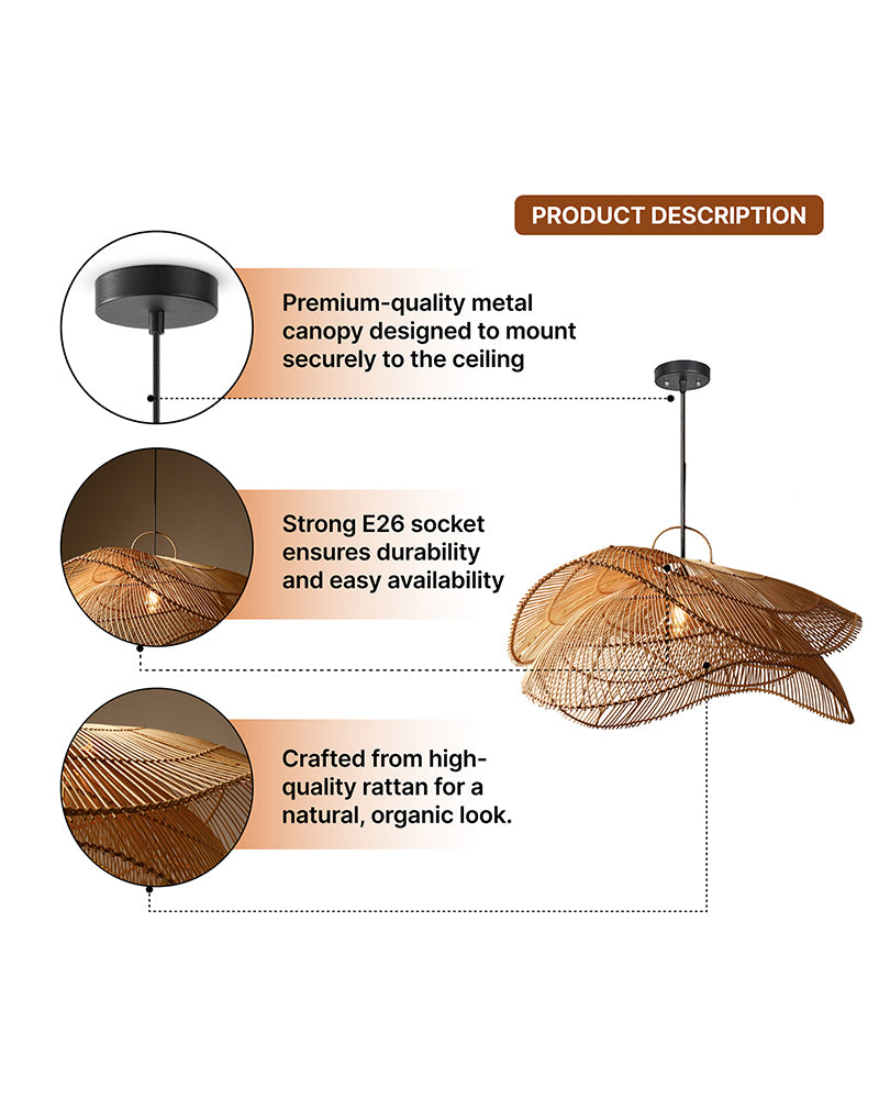 Handcrafted pendant lampshade made from Cane, designed to bring natural warmth and modern elegance to your interiors.