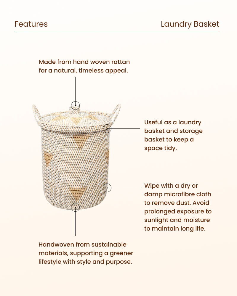 Handcrafted multipurpose rattan basket, designed to organize your space with natural elegance and timeless charm.