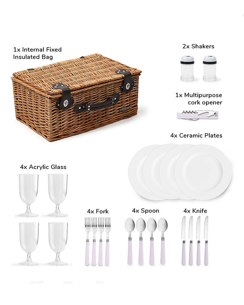 Versatile Use: From intimate picnics with a Wicker Picnic Basket For 2 to larger gatherings with a Wicker Picnic Basket For 4, this basket is perfect for a wide range of outdoor activities, including camping, hiking, and beach trips.