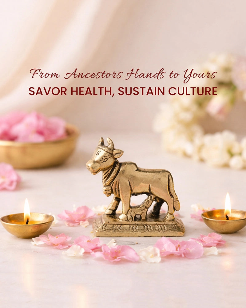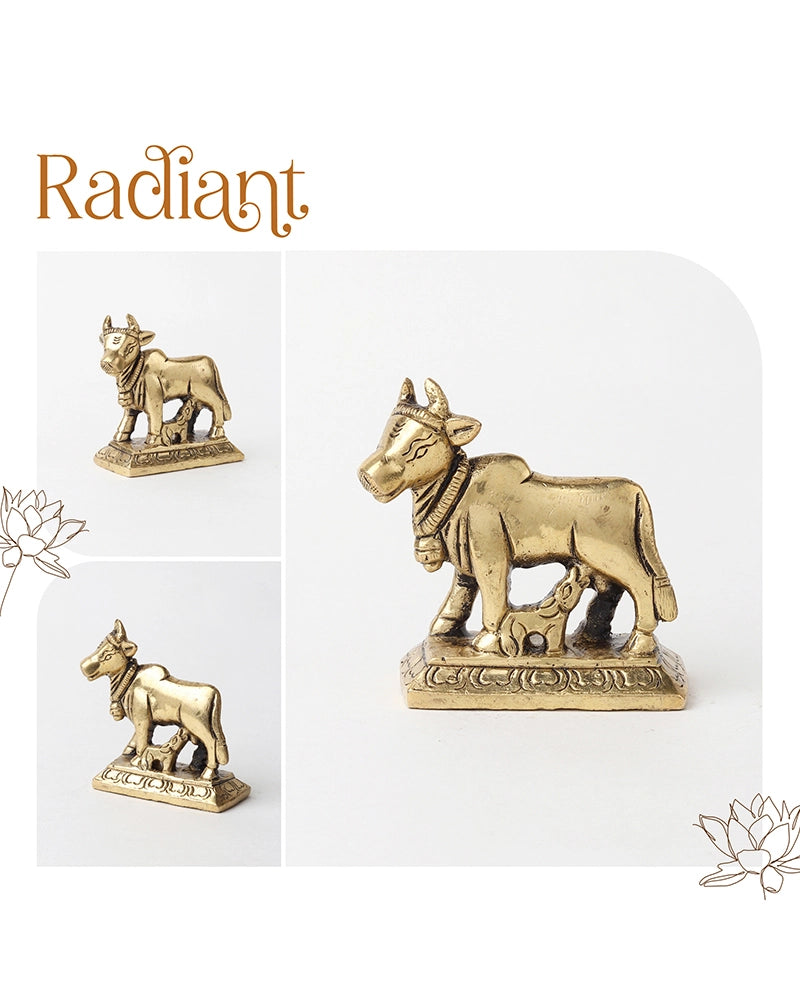 Pure Brass Kamdhenu cow idol beautifully crafted to symbolize abundance, prosperity, and divine blessings.