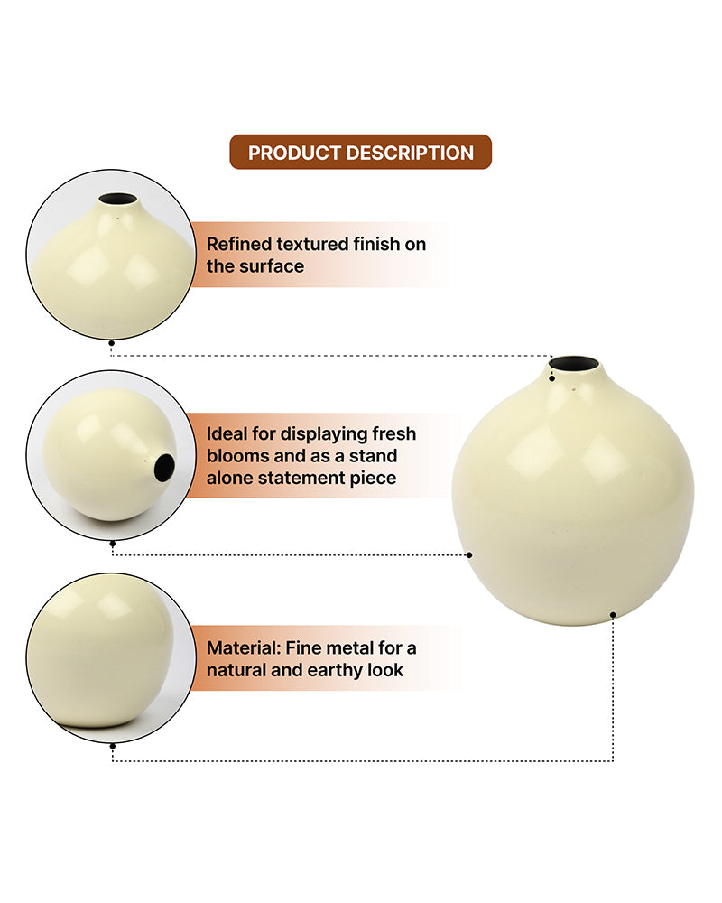 Expertly crafted by skilled Indian artisans using high-quality iron, this vase is durable, lightweight, and blends beautifully with modern, minimalist, contemporary, or luxury interiors.