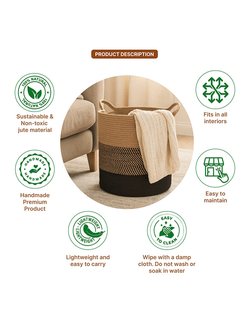 Laundry Basket For Clothes | Toy Storage Basket | Storage Baskets | Jute Laundry Bag