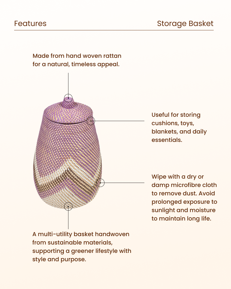 Handcrafted multipurpose rattan basket, designed to organize your space with natural elegance and timeless charm.