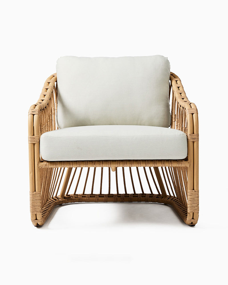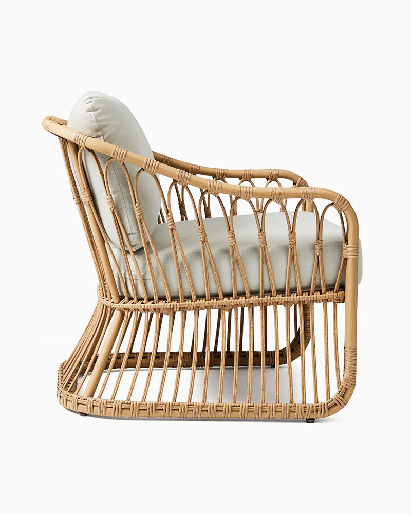 Handwoven bamboo frame is sustainably made from all natural materials. Sleek and modern arms are the perfect rest spots.