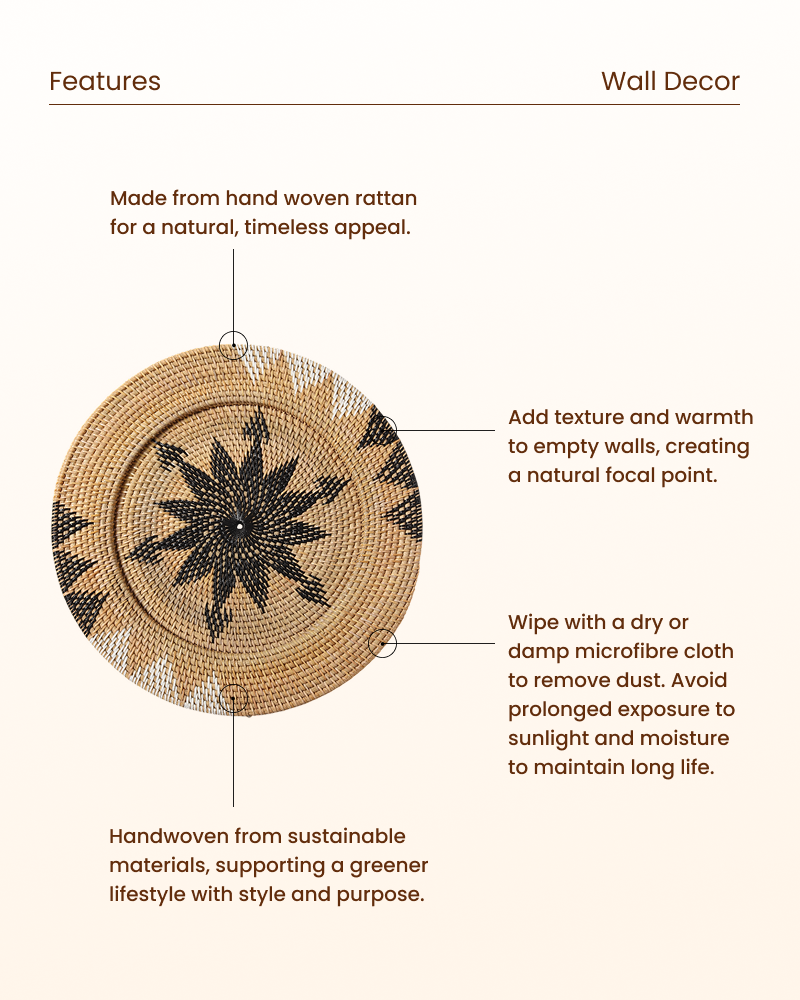 Handcrafted rattan wall decor designed to add warmth, texture, and organic artistry to any space.