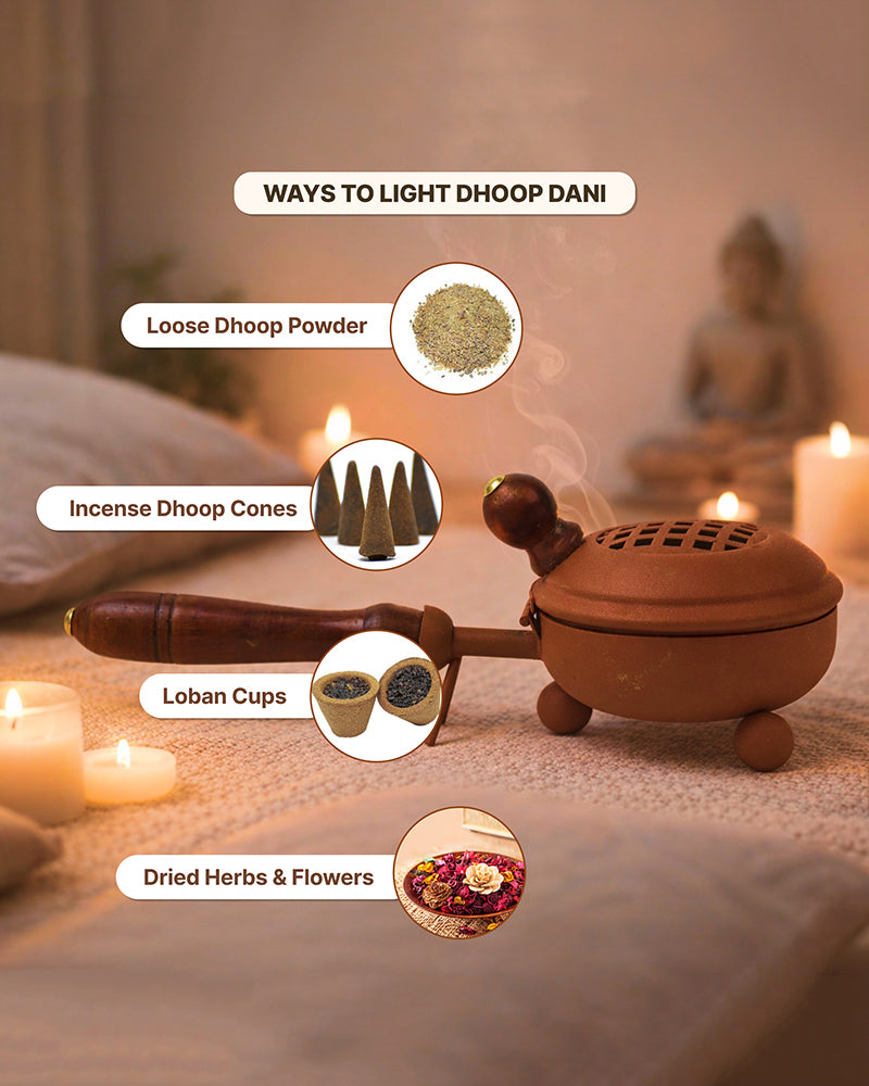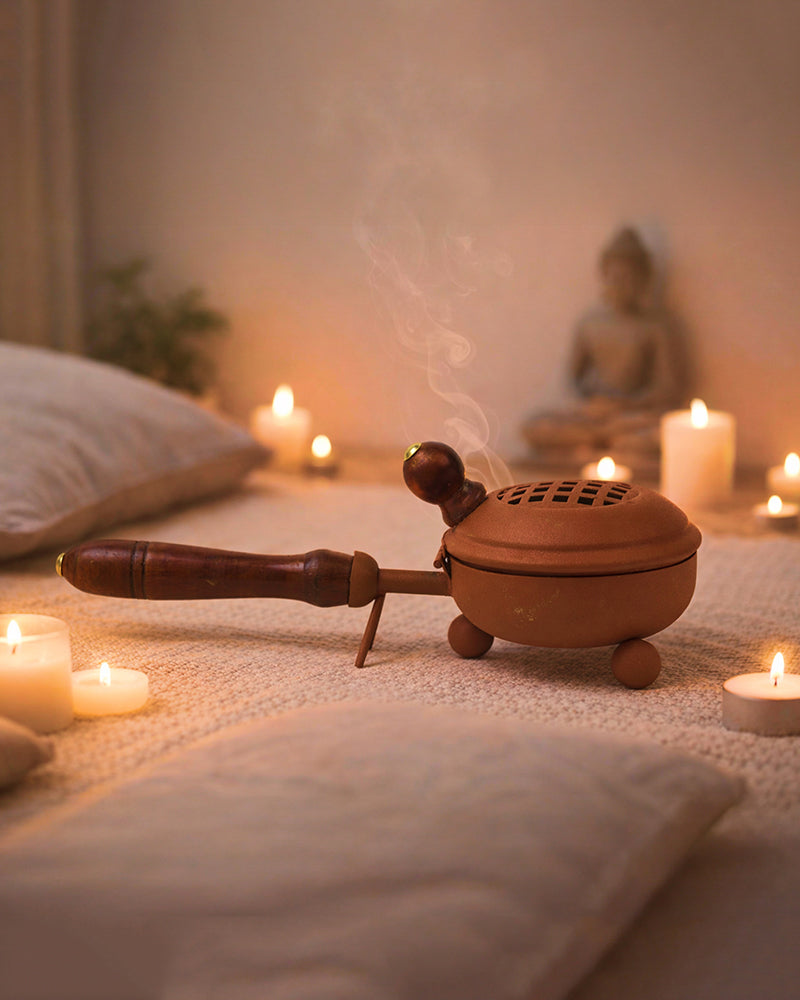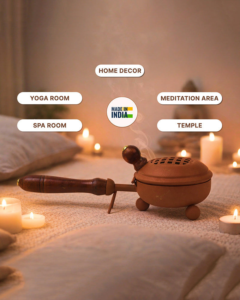 Perfect for burning Loban or Sambrani dhoop, adding fragrance and serenity to your space.