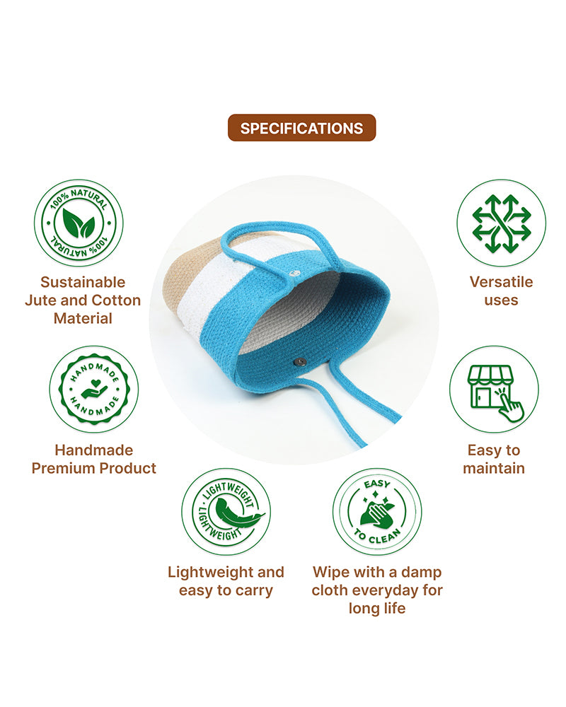 Decorative, functional and lightweight hand-braided Jute tote bag with structured and modern design with handles for easy portability.