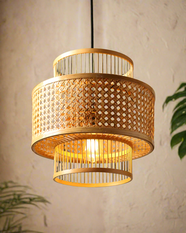 A modern interior decor bamboo pendant lamp that delivers an exquisite ambience of soft and welcoming light, thanks to its open weave design, giving your space a gentle and textured warmth.