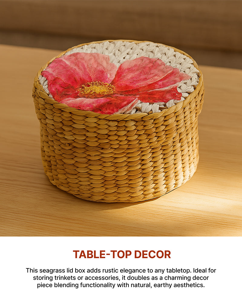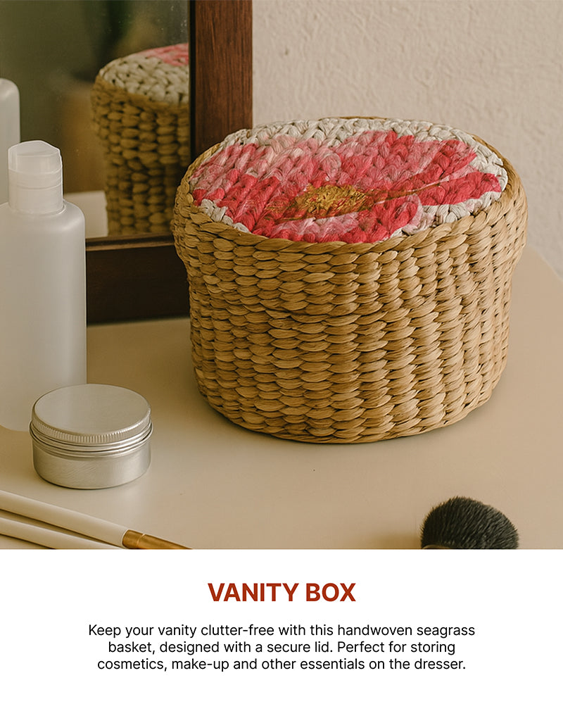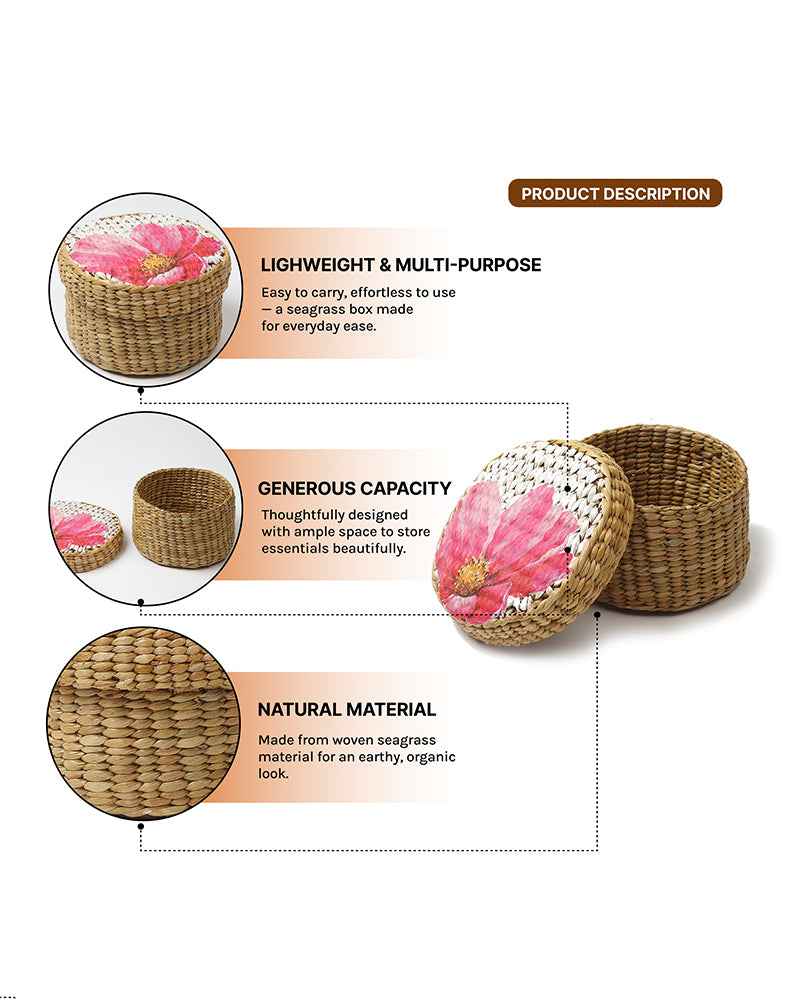 Round Gift Box | Seagrass Organiser Boxes | Storage Box with Lid