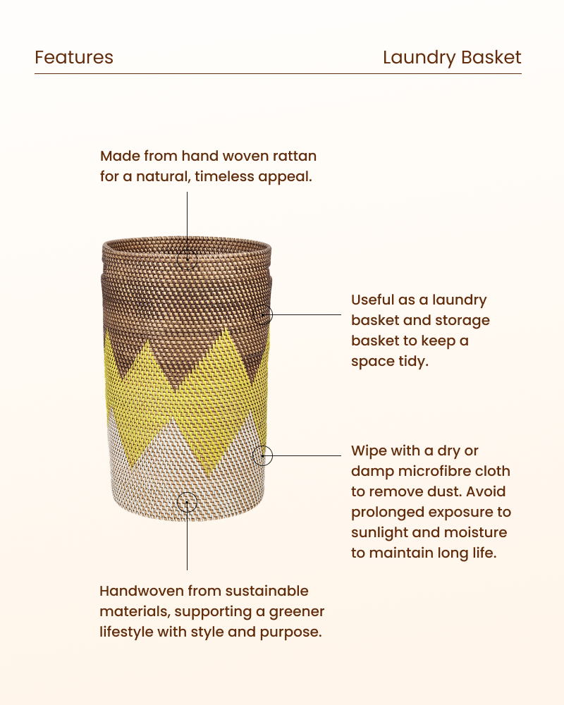 Handcrafted multipurpose rattan basket, designed to organize your space with natural elegance and timeless charm.