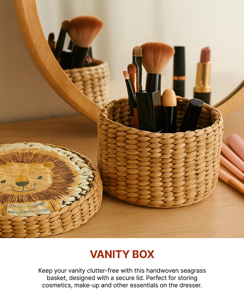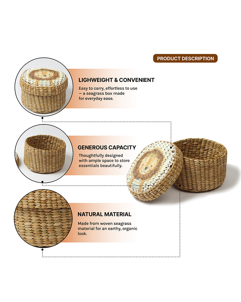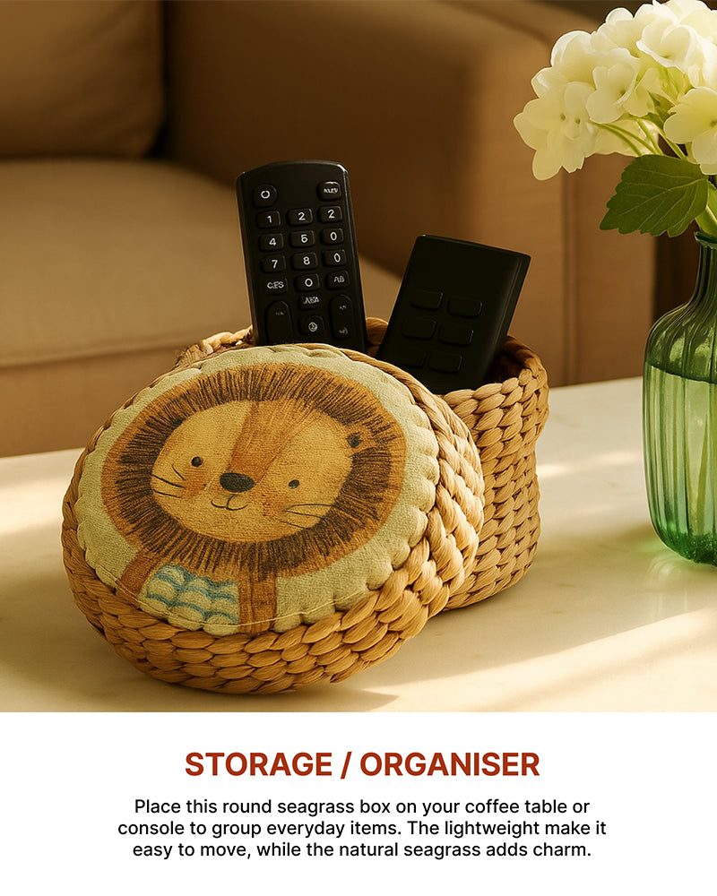 Storage Box with Lid | Round Gift Box | Seagrass Organiser Boxes