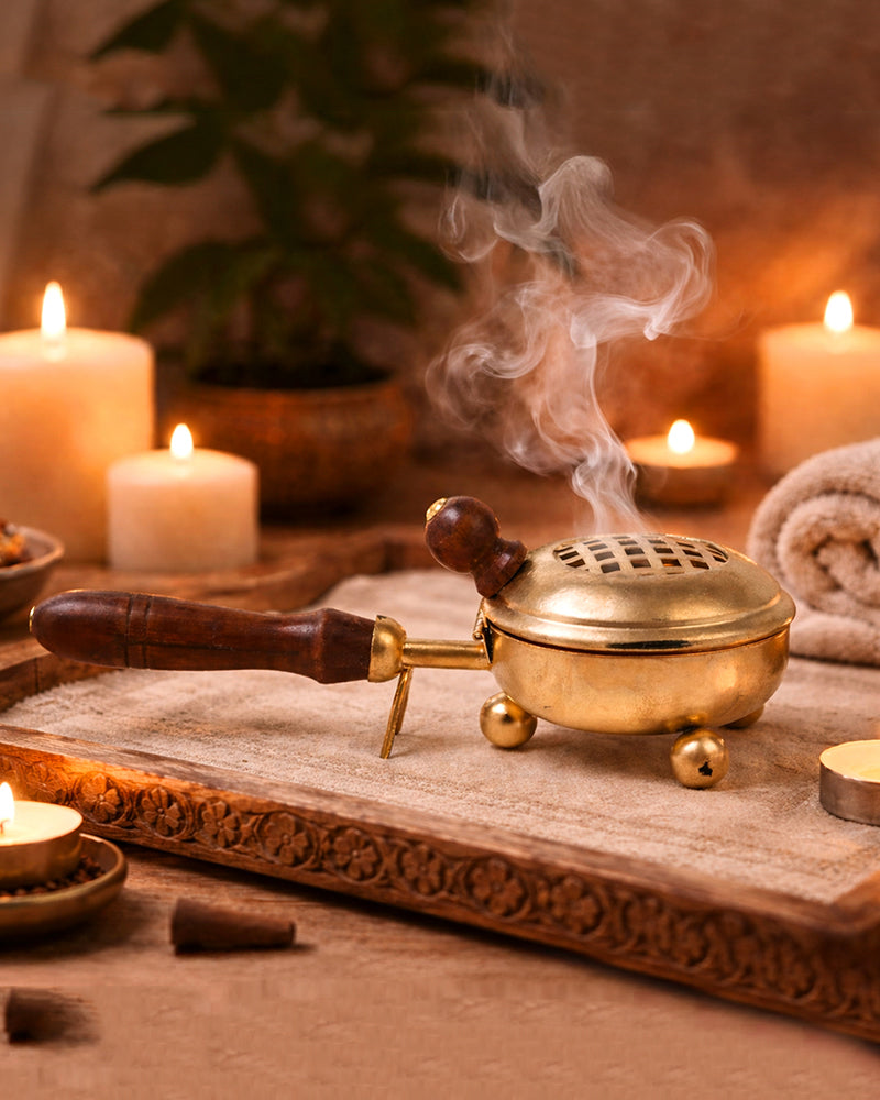 Perfect for burning Loban or Sambrani dhoop, adding fragrance and serenity to your space.