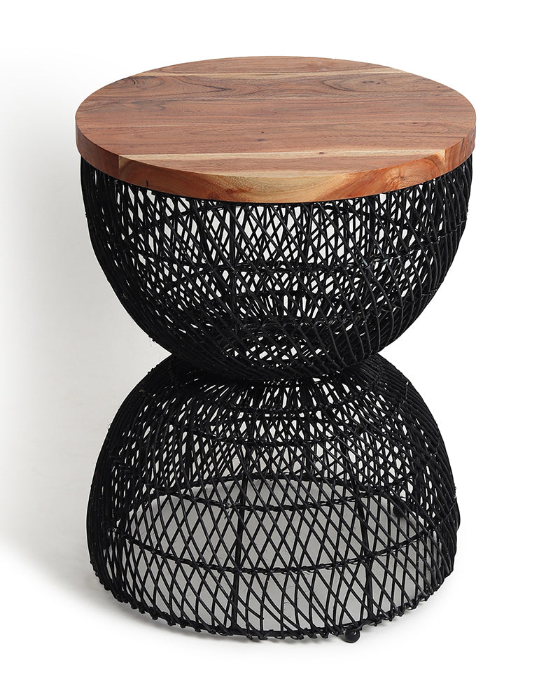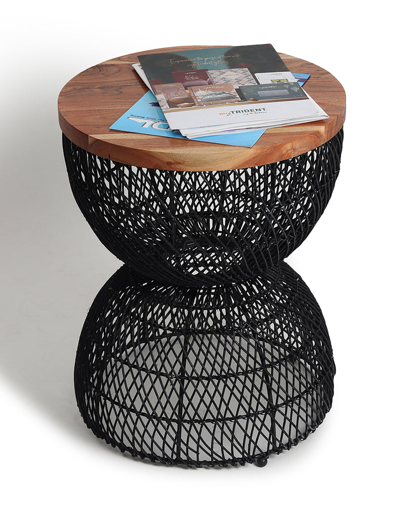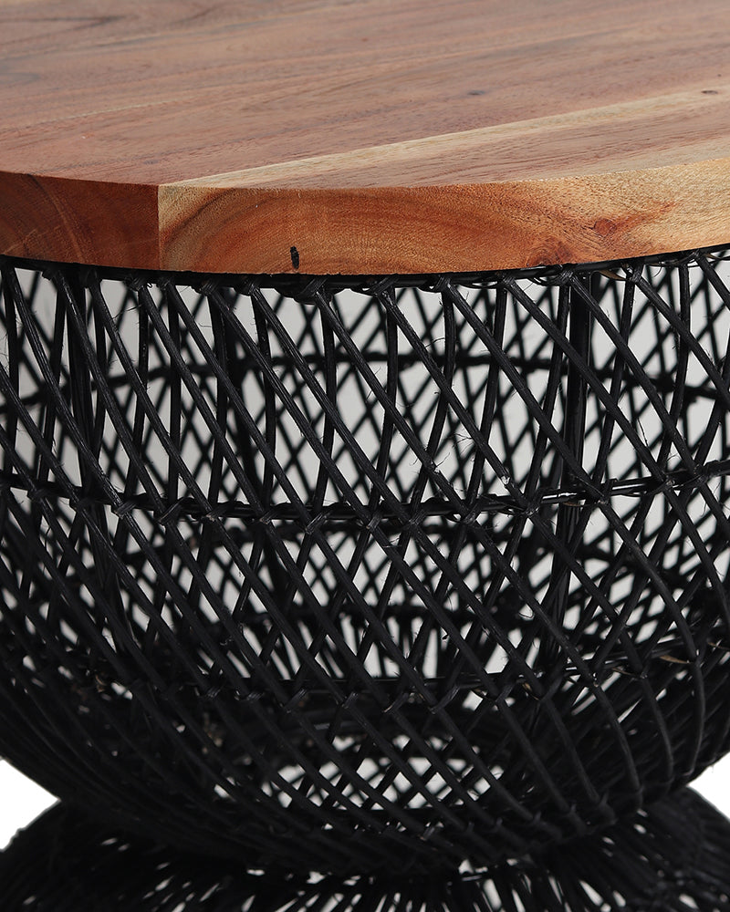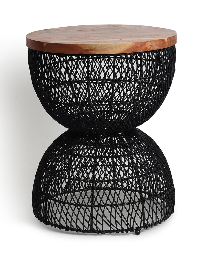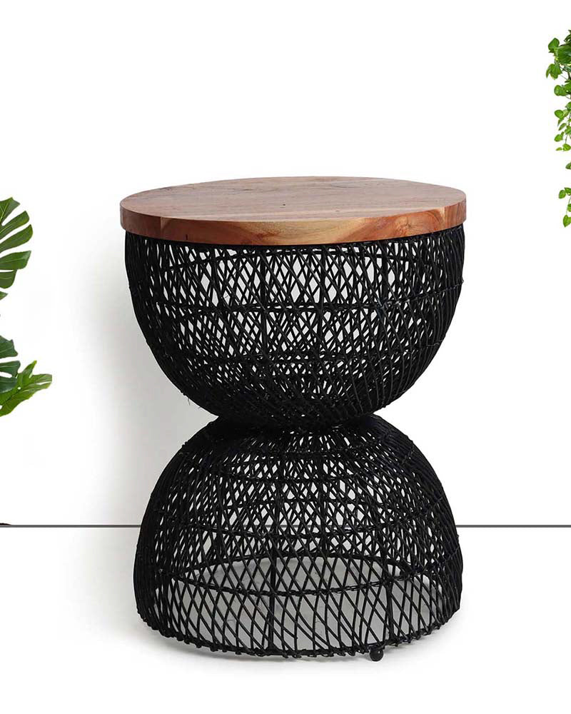Wooden Rattan Stool | Mini Side Stool | Cane Round Table | Stylish Side Table